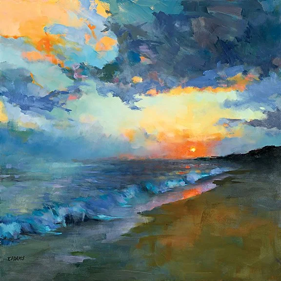 The road that led Adams to oil painting was a long one. After college, she had her own graphic design company for many years, but eventually tired of the all-nighter deadlines and lack of design control, yearning to create her own vision at her own pace.